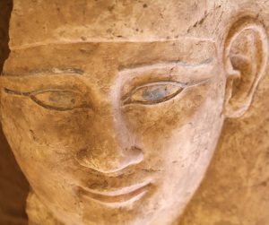 وفي داخل المقبرة، عُثر على تابوت من الحجر الجيري يبلغ ارتفاعه نحو مترين، موضوع فوق منصة صخرية نُحتت مباشرة في الجبل، ويتميز بغطاء على هيئة آدمية يحمل ملامح واضحة لوجه إنسان مزين بباروكة وزخارف مذهلة، بالإضافة إلى عمودين من النصوص الهيروغليفية التي تسجل أدعية للآلهة المحلية بمنطقة أسوان، واسم صاحب المقبرة “كا-مِسيو”، وهو أحد كبار المسؤولين في عصره، إلى جانب أسماء أفراد من أسرته.