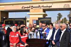 جاء ذلك خلال مؤتمر صحفي، عقده الدكتور خالد عبدالغفار، نائب رئيس مجلس الوزراء وزير الصحة والسكان، والدكتورة مايا مرسي، وزيرة التضامن الاجتماعي، في محيط معبر رفح البري، عقب تفقدهما إجراءات نقل الجرحى والمصابين الفلسطنيين من قطاع غرة، لتلقي الخدمات الطبية والعلاجية في المستشفيات المصرية.