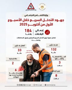 التضامن الاجتماعي: التدخل السريع يتعامل مع 184 بلاغًا خلال الأسبوع الأول من شهر أكتوبر