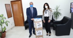 تلقت وزارة التنمية المحلية، تبرعا بحوالى 5 آلاف كمامة للوقاية من فيروس كورونا المستجد ، من مؤسسة ” بنحبك يا مصر للتنمية ” لتوزيعها على العاملين بالوزارة وعدد من المحافظات ، حيث قام اللواء حمزة درويش رئيس قطاع شئون مكتب الوزير والديوان العام باستقبال المهندسة زينب بشير رئيس المؤسسة بمقر الوزارة لتسلم الكمامات .