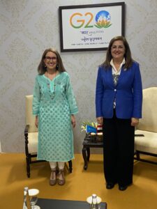 اجتمعت الدكتورة هالة السعيد، وزيرة التخطيط والتنمية الاقتصادية مع ريبيكا جرينسپان مايوفيس، الأمينة العامة لمؤتمر الأمم المتحدة للتجارة والتنمية (أونكتاد)، لبحث سبل التعاون المشترك، وذلك على هامش مشاركتها باجتماع وزراء التنمية ضمن أعمال مجموعة العشرين المنعقدة بالهند رئيس الدورة الحالية للمجموعة في الفترة من 11-13 يونيو الجاري.