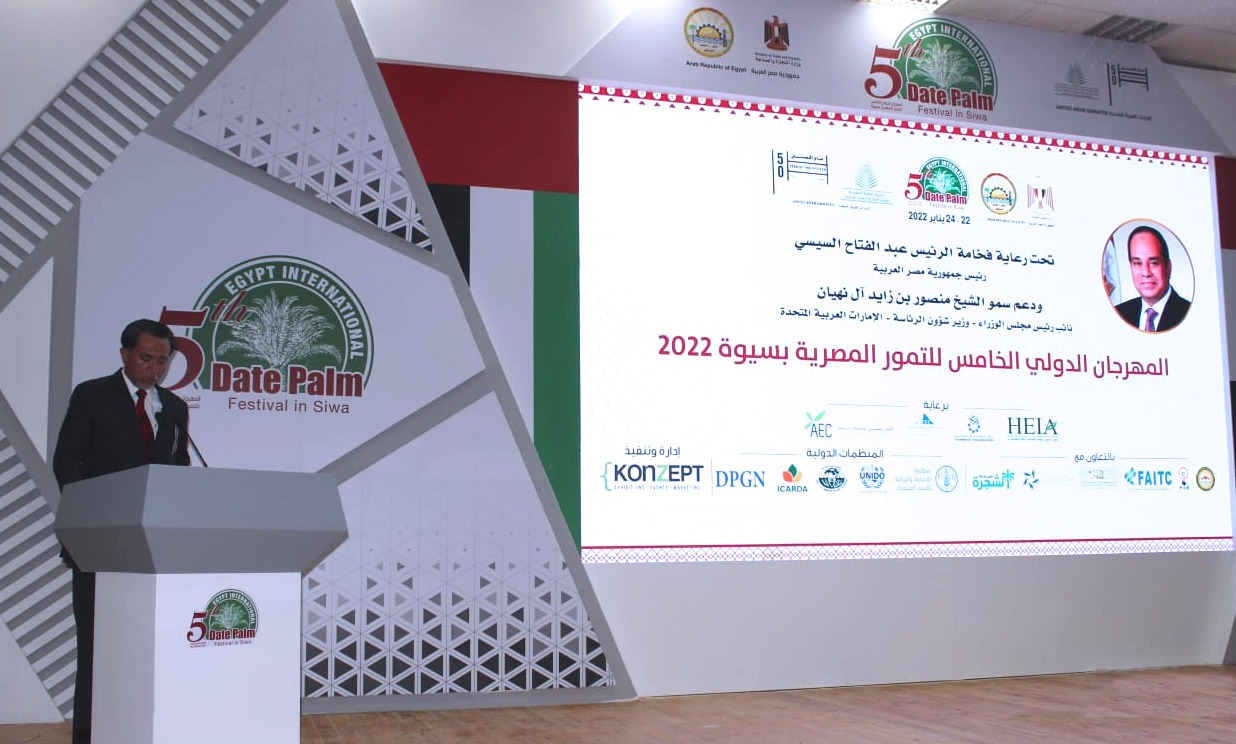 وقال أن انطلاق مهرجان التمور بواحة سيوة للعام الخامس هو خير دليل على التعاون الجاد من أجل مستقبل أفضل لتطوير هذه الصناعة وتحقيق المنافسة الجادة،وتعظيم العائد منها ، وهو ما يعكس الاهتمام برعاية الشجرة المباركة وتحسين سلالتها بأصناف جديدة ، مع الحفاظ على المتميز منها ،لزيادة الإنتاج وتحسين الصناعة بتنوع مخُرجاتها من أجل التوسع في تصديرها وفتح أسواق جديدة مع ما تمثله من قيمة اقتصادية للصادرات المصرية ، و بما يعود بالنفع على المزارع من خلال خلق مزيد من فرص العمل الجديدة،و بما يسهم فى تعزيز الاقتصاد الوطنى .