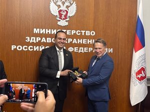 جاء ذلك خلال لقاء د. أحمد السبكي، رئيس هيئة الرعاية الصحية، وزير الصحة الروسي د. ميخائيل موراشكو، لبحث سبل تعزيز التعاون الصحي، خاصة في مجالات الطب النووي وعلاجات الأورام والابتكار الرقمي.