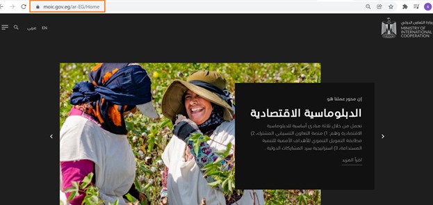 1-الدخول على الموقع الإلكتروني لوزارة التعاون الدولي https://moic.gov.eg/ar-EG/Home
