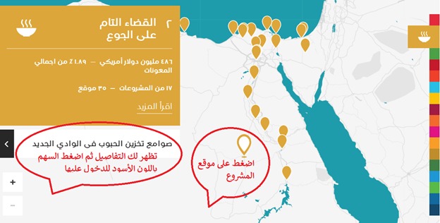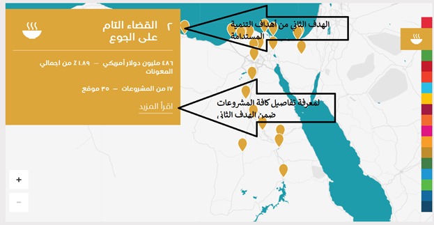 5- يمكن الضغط على كل مشروع ومعرفة البيانات التفصيلية الخاصة به وتطبيق ذلك على كافة أهداف التنمية المستدامة.