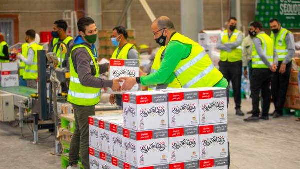 وأوضح عبد الفتاح أن قوافل الحملة مستمرة في توفير المواد الغذائية والدواجن خلال شهر رمضان، لدعم أكبر عدد من الأسر المستحقة، لافتا إلى أن كل أسرة تحصل على كرتونة تتضمن ( 4 كيلو أرز، و1.5 مكرونة، وعبوة زيت، ونصف كيلو فول تدميس، و2 كيلو سكر، وعبوة سمن، وعبوة شاي، وكيلو بلح)، كما سيتم توزيع الدواجن في شكل شنطة تزن 2 كيلو و500 جرام، بالإضافة إلى شنطة تحتوي على 5 كيلو بطاطس.