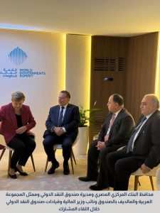 وعلى هامش المنتدي عقد السيد المحافظ، العديد من اللقاءات المهمة، حيث التقى السيدة/ كريستالينا جورجيفا المديرة العامة لصندوق النقد الدولي، لبحث أوجه التعاون المشترك بين الجانبين وتطورات المؤشرات الكلية للاقتصاد المصري، في إطار برنامج الإصلاح الاقتصادي الذي تنفذه مصر بالتعاون مع صندوق النقد الدولي، وذلك بحضور الدكتور/ محمد معيط المدير التنفيذي وعضو مجلس المديرين التنفيذين وممثل المجموعة العربية والمالديف بصندوق النقد الدولي، والسيد/ ياسر صبحي نائب وزير المالية، الدكتور/ جهاد أزعور مدير إدارة الشرق الأوسط وآسيا الوسطى في صندوق النقد الدولي وعدد من قيادات الصندوق.