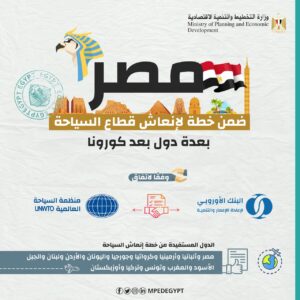 وعلى جانب آخر أشار تقرير وزارة التخطيط والتنمية الاقتصادية إلى اتفاق البنك الأوروبي لإعادة الإعمار والتنمية EBRD ومنظمة السياحة العالمية التابعة للأمم المتحدة UNWTO على اختيار مصر ضمن عدد من الدول فى خطة انعاش قطاع السياحة بالدول التي تضررت بسبب فيروس كورونا، وهذه الدول هى مصر وألبانيا وأرمينيا وكرواتيا وجورجيا واليونان والأردن ولبنان والجبل الأسود والمغرب وتونس وتركيا وأوزبكستان، وترتكز هذه الخطة على ثلاث مجموعات رئيسية التي اعتمدتها منظمة السياحة العالمية، والتي تشمل الانتعاش الاقتصادي، التسويق والترويج، وتعزيز وبناء مرونة المؤسسات ، وتساهم هذه الخطة في تقديم المساعدة الفنية للقطاع، كما تشمل الخطة قياس تأثير فيروس كورونا، وبروتوكولات لضمان السلامة والنظافة والأمن المعزز للسياح والموظفين ، بالإضافة إلى الحفاظ على رأس المال البشري وكذلك التكيف وتعزيز الشمول.