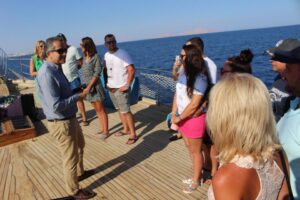 وزير السياحة والآثار يتفقد الإجراءات الوقائية بأحد المراكب السياحية بشرم الشيخ ويلتقي بمجموعة من السائحين الأوكرانيين والبيلاروسيين