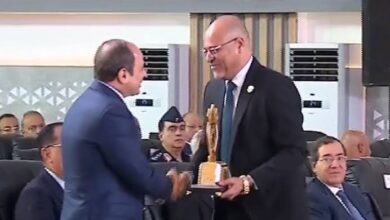 رئيس اتحاد عمال مصر يهدى الرئيس السيسى درعا تذكاريا خلال عيد العمال