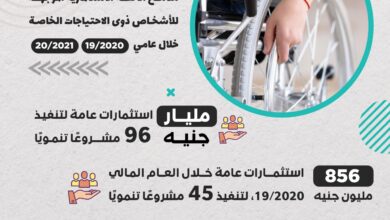 وزارة التخطيط والتنمية الاقتصادية تصدر تقريرًا حول ملامح الخطة الاستثمارية الموجهة لذوي الاحتياجات الخاصة فى عامي 19/2020 و 20/2021