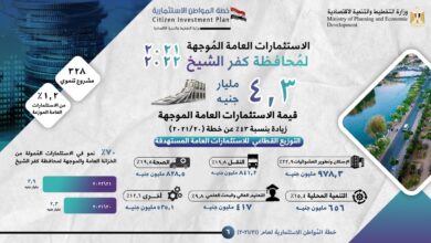 وزارة التخطيط والتنمية الاقتصادية تعلن خطة المواطن الاستثمارية لمحافظة كفر الشيخ لعام 21/2022