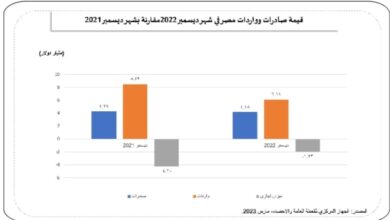 التعبئة العامة والإحصاء: 54% انخفاض قيمة العجز في الميزان التجاري في شهر ديسمبر 2022