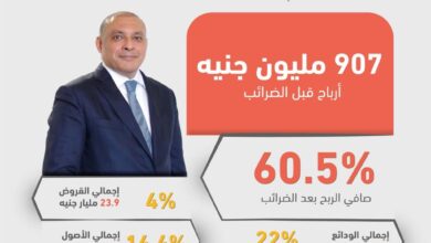 التجارى وفا بنك ايجيبت يحقق رقما قياسيا جديدا .. ويحقق أرباح قبل الضرائب بقيمة 907 مليون جنيه خلال العام المنتهى فى 31 ديسمبر 2021