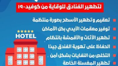 الجورنال الاقتصادى: أعلنت وزارة الصحة والسكان، 6 نصائح لتطهير الفنادق للوقاية من فيروس كورونا المستجد. وأوضحت الوزارة، النصائح كالتالي: –…