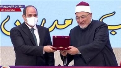 الرئيس السيسي يكرم الشيخ خالد الجندي فى احتفال المولد النبوي